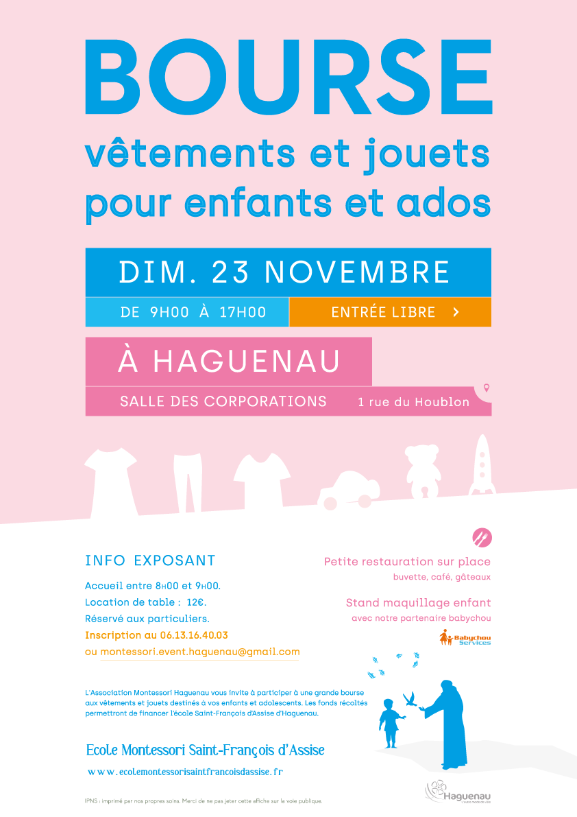 Depuis plusieurs années, l’école propose avant la période de Noël, une bourse aux vêtements et jouets à la salle des corporations de Haguenau.